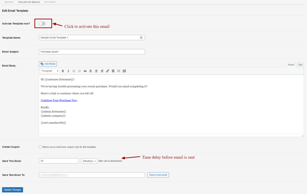 At the top of the screen, under where it says Web Store Abandonment Cart Recovery, click button for “follow-up emails”