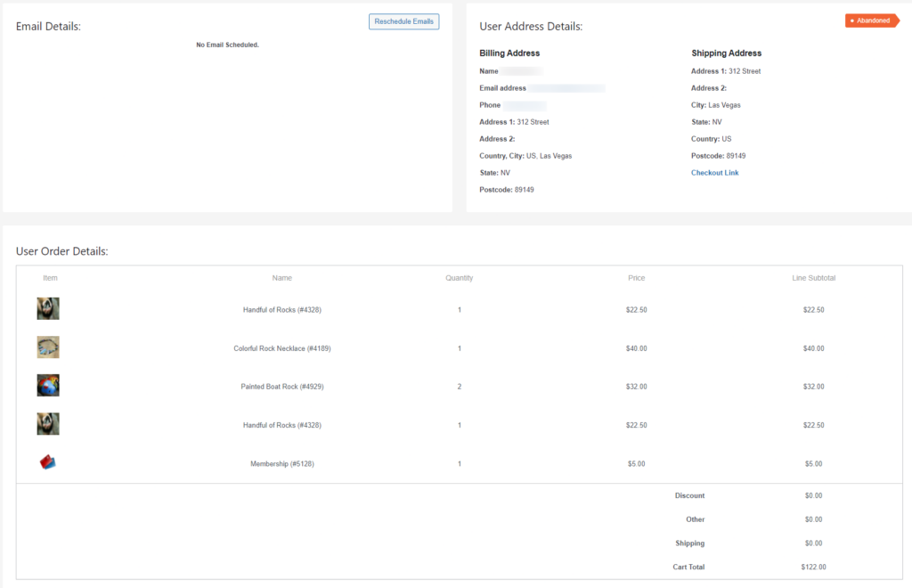 An abandoned cart is one where a customer has placed items in their cart but did not complete the entire checkout experience. Abandoned cart recovery lets you remind or even incentivize customers to finish their purchases. You can only recover orders from known customers – Customers who have logged in or who have entered their email address. You cannot recover a cart from a guest or unknown customer.