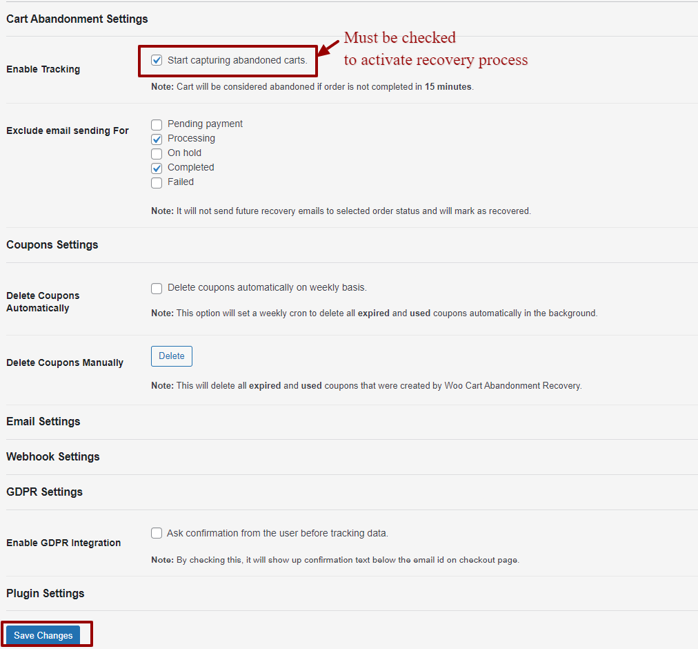 For abandoned cart recovery to work, you need to make sure it is activated in the settings. You can also make other adjustments as needed.